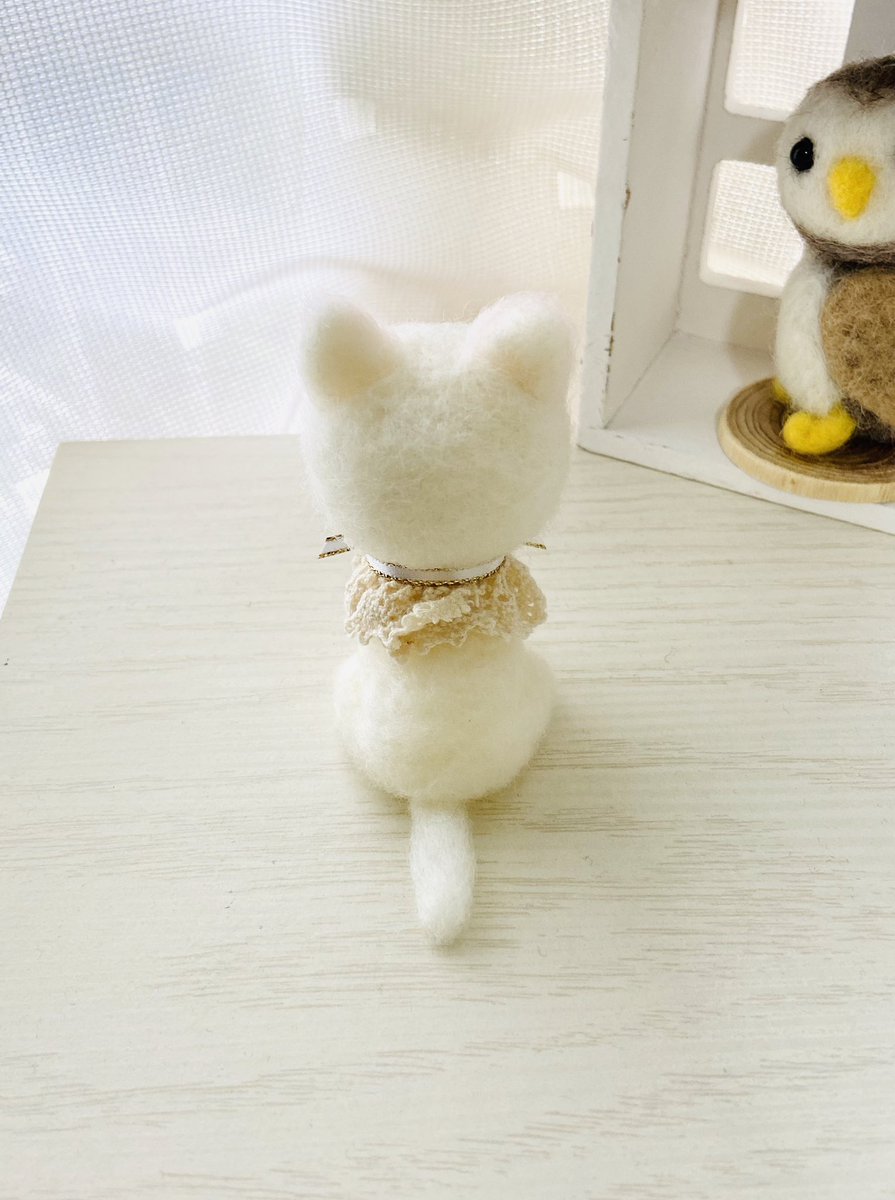 羊毛フェルト レースが可愛いい白猫ちゃん🐈 今回はレースを付けてみました^ ^ #羊毛フェルト #白猫 #猫 #ぬいぐるみ #レース