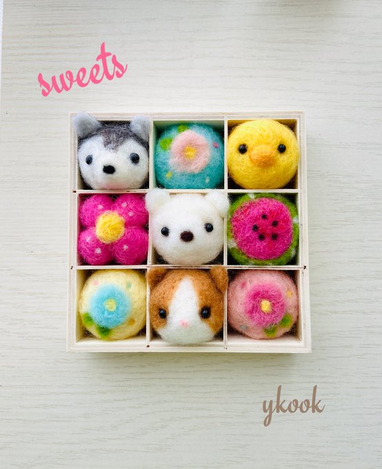 1 6 スイーツみたいな羊毛フェルトのアロマ 可愛くて美味しそうですよ〜 アロマ液をふりかけて、香りも楽しんで下さい。 #羊毛フェルト #アロマデュフューザー #アロマ #犬 #猫 #白くま #ひよこ #スイーツ #和菓子 20/07/16 13:21