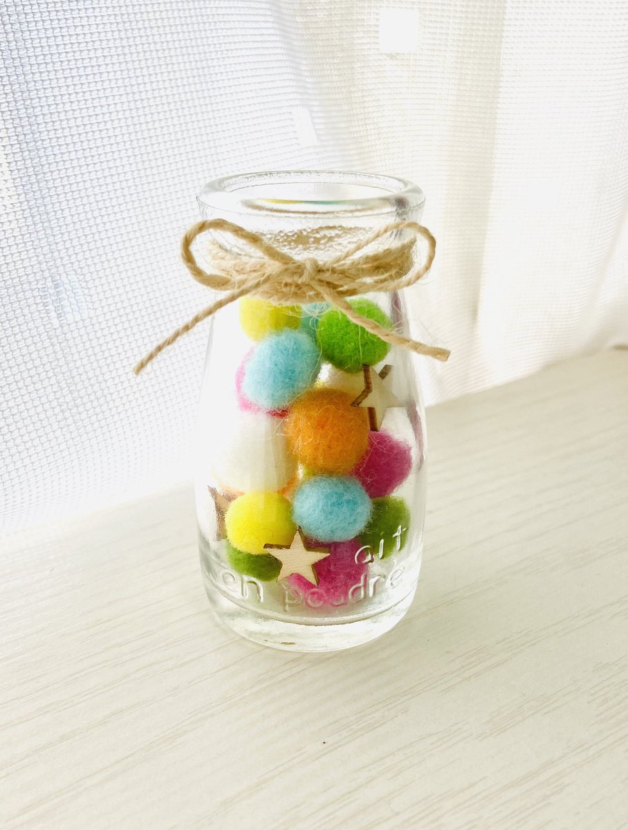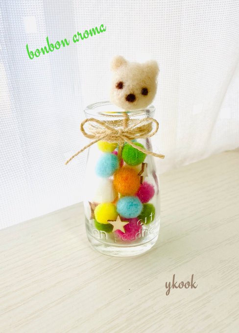 0 6 羊毛フェルト 牛乳瓶のボンボンアロマ(くまさん付) 付属のアロマ液を2、3滴ふりかけて、香りをお楽しみください。 #羊毛フェルト #アロマ #アロマボンボン #牛乳瓶 #くま #星 20/07/16 19:11