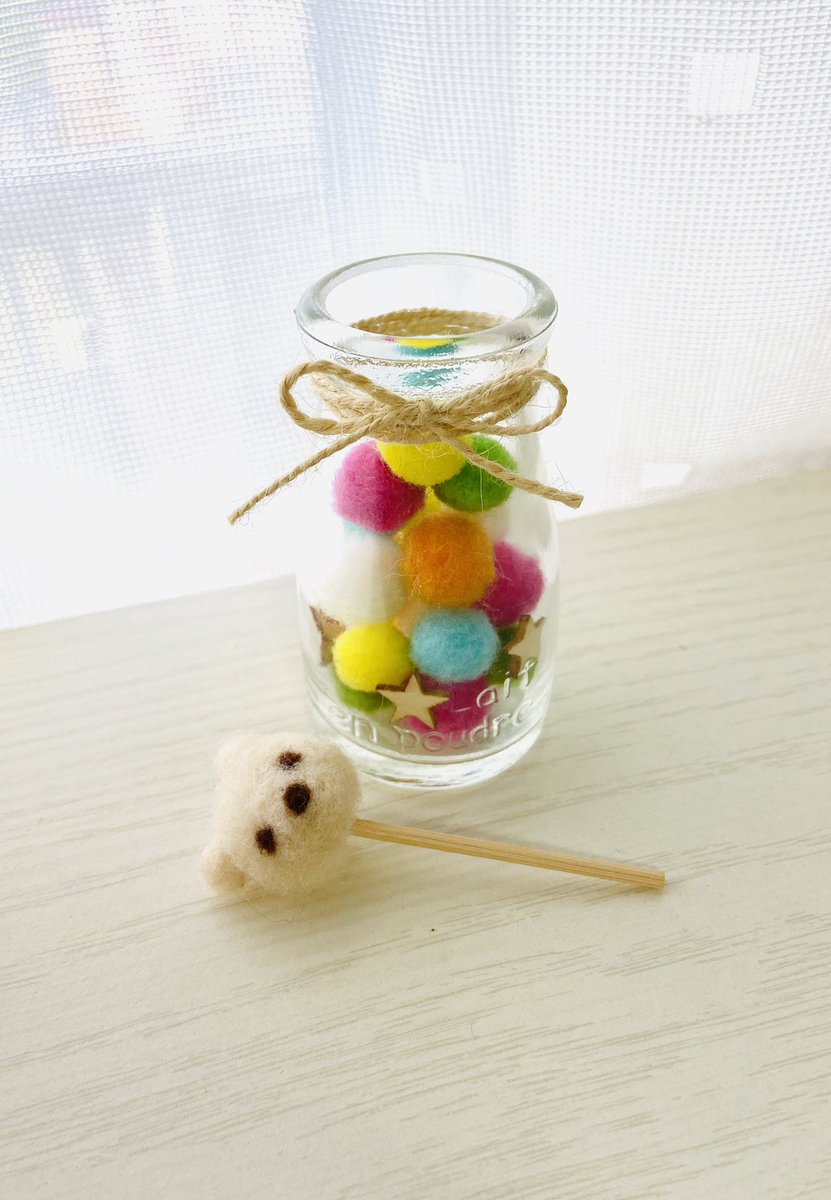 羊毛フェルト 牛乳瓶のボンボンアロマ(くまさん付) 付属のアロマ液を2、3滴ふりかけて、香りをお楽しみください。 #羊毛フェルト #アロマ #アロマボンボン #牛乳瓶 #くま #星