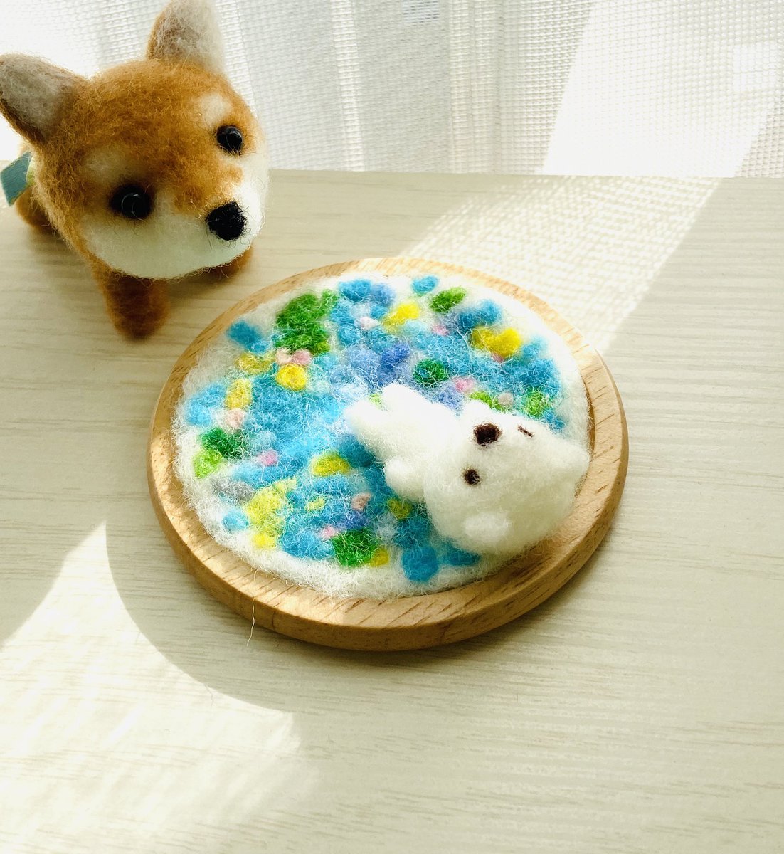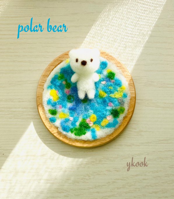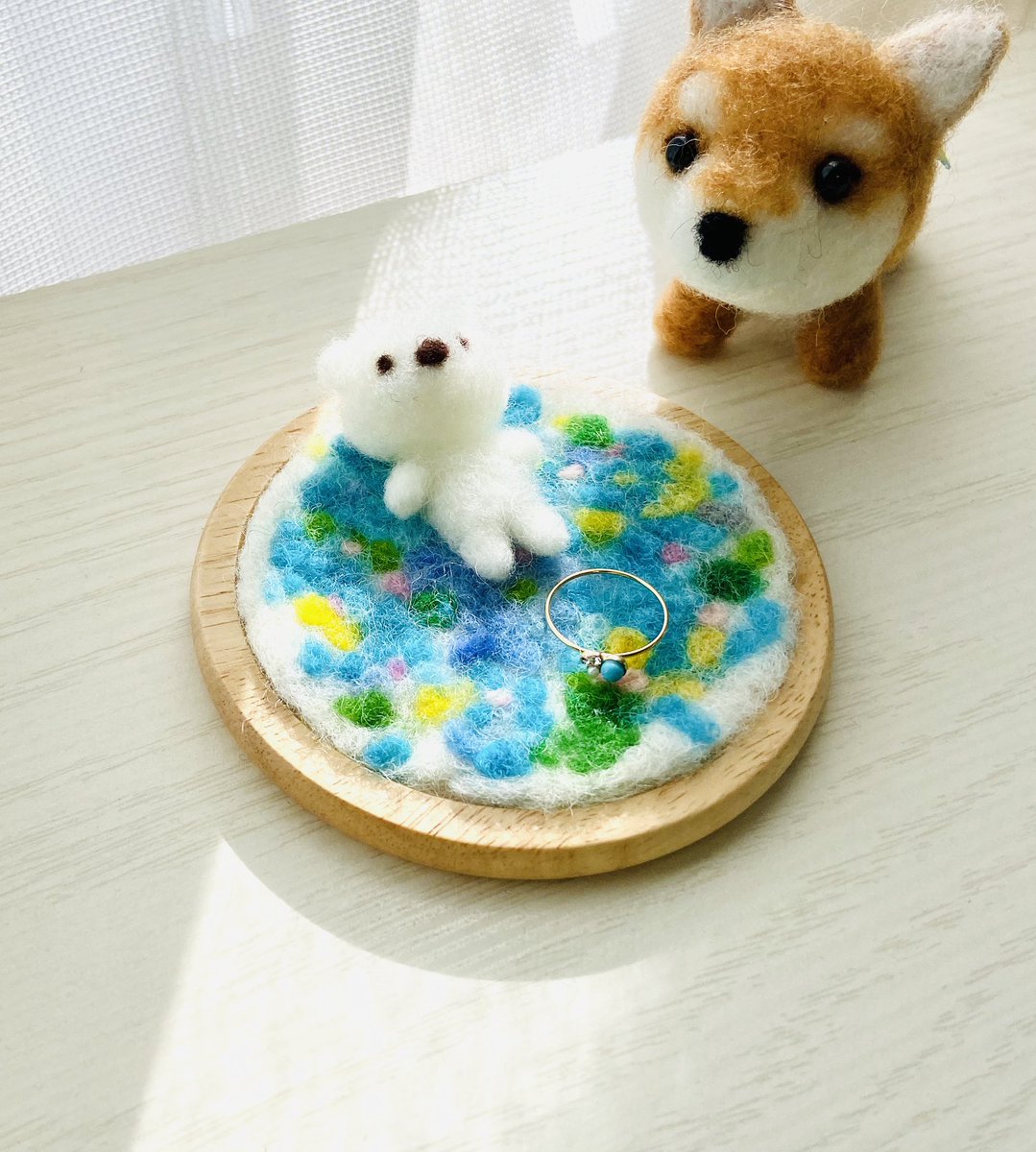 0 7 羊毛フェルト ひかるお池で水浴び白くまさん(アクセサリートレイ) 白くまさん涼しそうです^ ^ #羊毛フェルト #アクセサリートレイ #白くま #polarbear #池 #pond 20/07/22 19:06