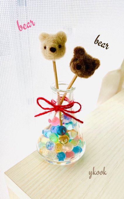 0 8 フラスコ瓶のつぶつぶアロマ(くまさんスティック付)とアイスみたいなアロマボンボンです^ ^ #アロマボンボン #バブルジェリー #くま #羊毛フェルト #アイス #aroma #ice 20/07/29 20:38