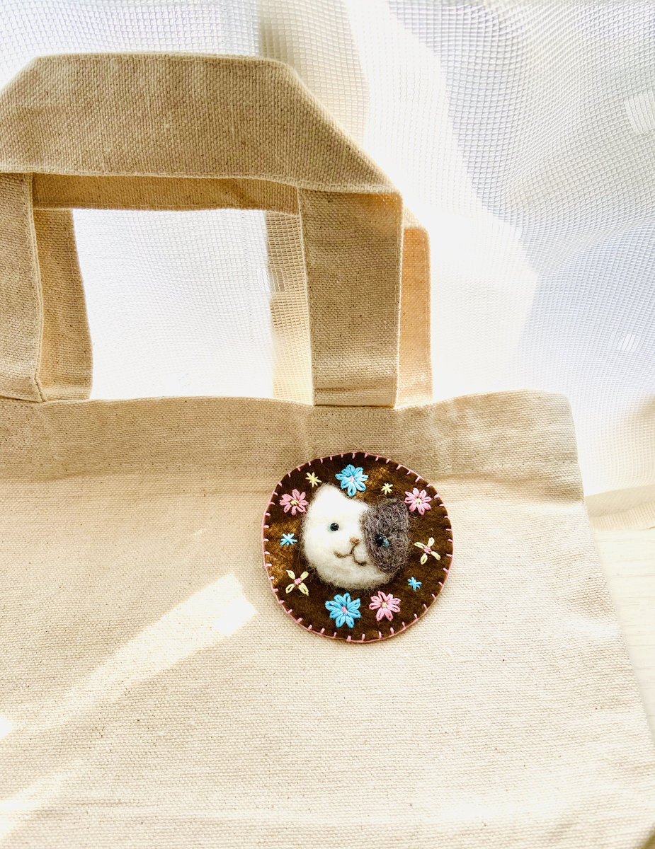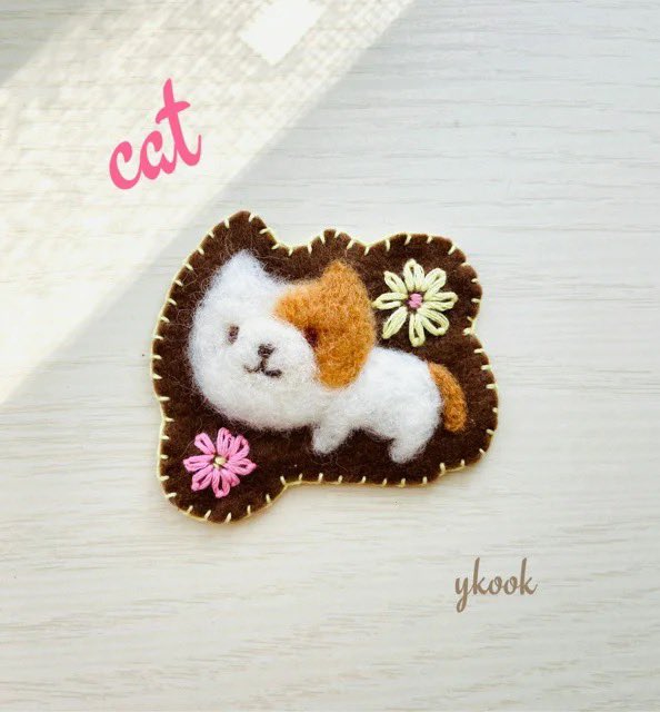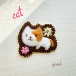 2 14 羊毛フェルト のほほん猫ちゃんのブローチ のほほんとした猫ちゃんとお花が可愛いです💕 #猫 #ねこ #cat #ブローチ #brooch #羊毛フェルト #花 #flower 20/08/21 15:26
