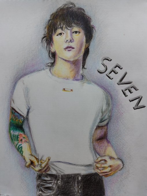 #btsfanart #色鉛筆画 #BTS #Jungkook #JungKook_Seven ぐうちゃん🐰のソロ曲Seven 待ちきれない! わくわくわくわく💜💜💜💜💜💜💜 GMAでのパフォーマンス 楽しみ!