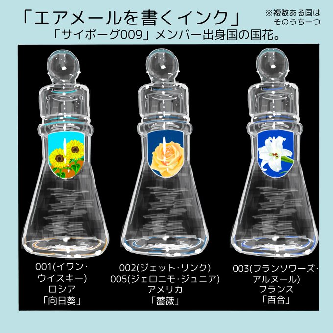 #ツイッターTL復活祭 くだらないギャグ漫画ばかり描いていますが、花の絵も描いています。 インクポットに花を閉じ込めた架空のインクの絵、 「丸窓から○○」という絵を描いています。 こういうのがお好きな方にご覧いただけると幸いです。 #サイボーグ009 #イラスト