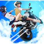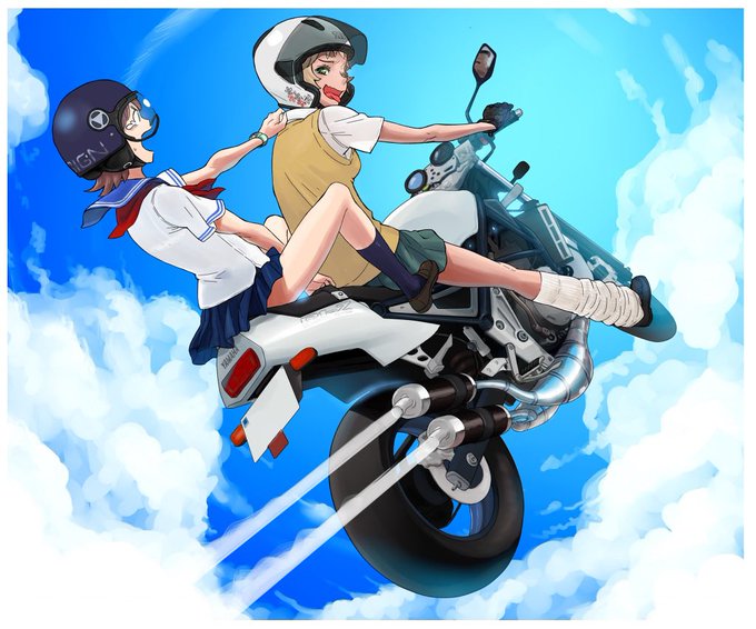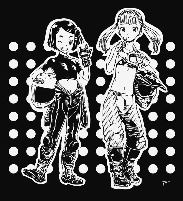 #自分の代表作だと思う絵を一枚だけ選んでみよう ホントこれ左のやつのバンクセンサーが膝頭になっちゃってるのだけ泣きたいくらい惜しい(まあブーツの形も甘い)んだけど、それ以外は6年経った今でもわりと自慢の品です。限られた条件(2値、描線は2mm以上)のなかでよく表現できてる。