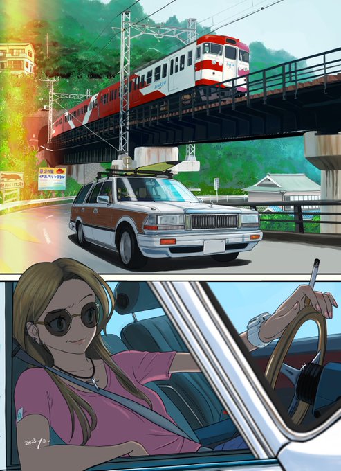 Y30セドリックワゴンと伊豆急行を描きました。2003年5月頃の東伊豆を想定して描かれています。伊吹revさんの #イラストレータードライバーズ に載せていただいたものですね。公開許可済。