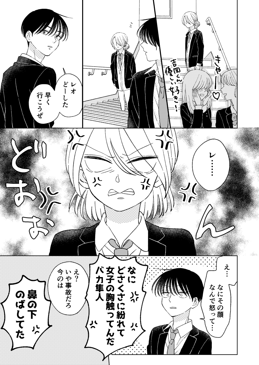 #今年も残りわずかなので今年一番伸びた絵を貼る見た絵描きさんも強制でやる これでした…! 再掲になっちゃうけどよければまた見てやってください〜🙌🏻✨ 幼馴染BL 隼人×レオ 『嫉妬させたい!!』 (1/5) #創作BL