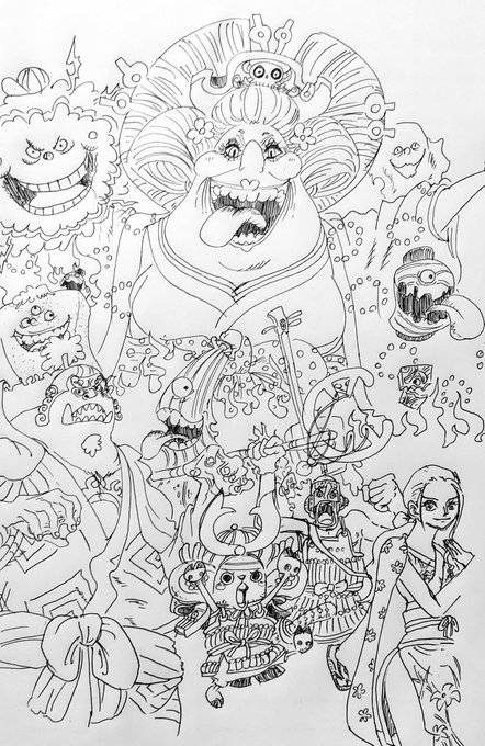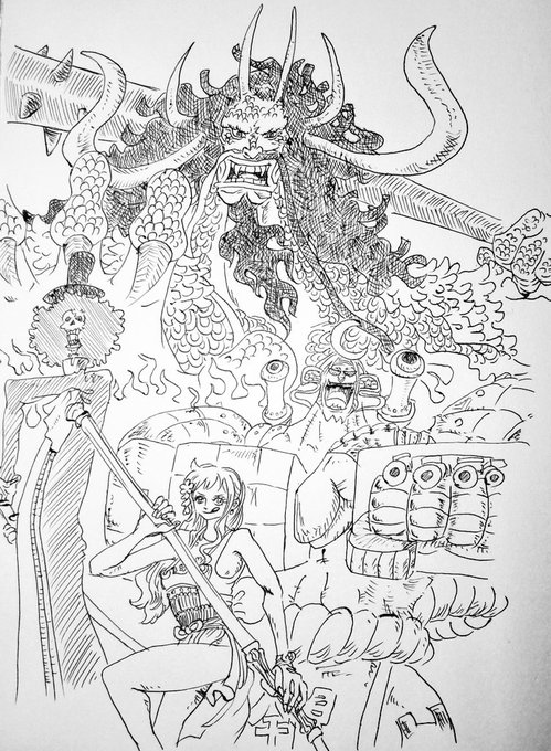 #イラスト好きと繋がりたい #ボールペン #みんなで楽しむTwitter展覧会 #絵描きさんと繋がりたい #模写イラスト #ONEPIECE #ワンピース101巻 #絵描きの輪 #絵の世界 「ワンピース99巻〜3巻分、一発描き模写」達成✨ 夜には3巻分並べてみよう。 宜しければ見に来てください😊