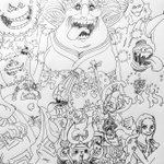 #絵描きさんとつながりたい #みんなで楽しむTwitter展覧会 #冬の創作クラスタフォロー祭り #アトリエの系譜S #ワンピース #ボールペン #模写イラスト #一発描き お待たせしました!? 待って頂いてた方、ありがとうございます🎶 99巻〜3巻分、一発描き模写して並べてみました!