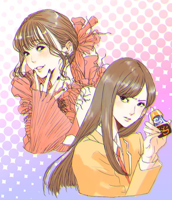過去絵漁ってたらアギレラ様とさくらちゃんの線画放置されてたので色塗ってみた まださくらちゃんがジャンヌに変身する前の2人(絶対さくらちゃん変身すると信じてバイスタンプだけ持たせてた) #仮面ライダーリバイス