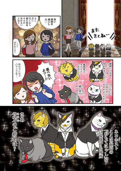 ネコホスト20話を掲載して頂いております✨寒くなってきたのでホスト達が膝に乗ってくることが多くなるかもしれません。暖をとるため?いいえ、戦略的接客です👍 comic-action.com/episode/327037…