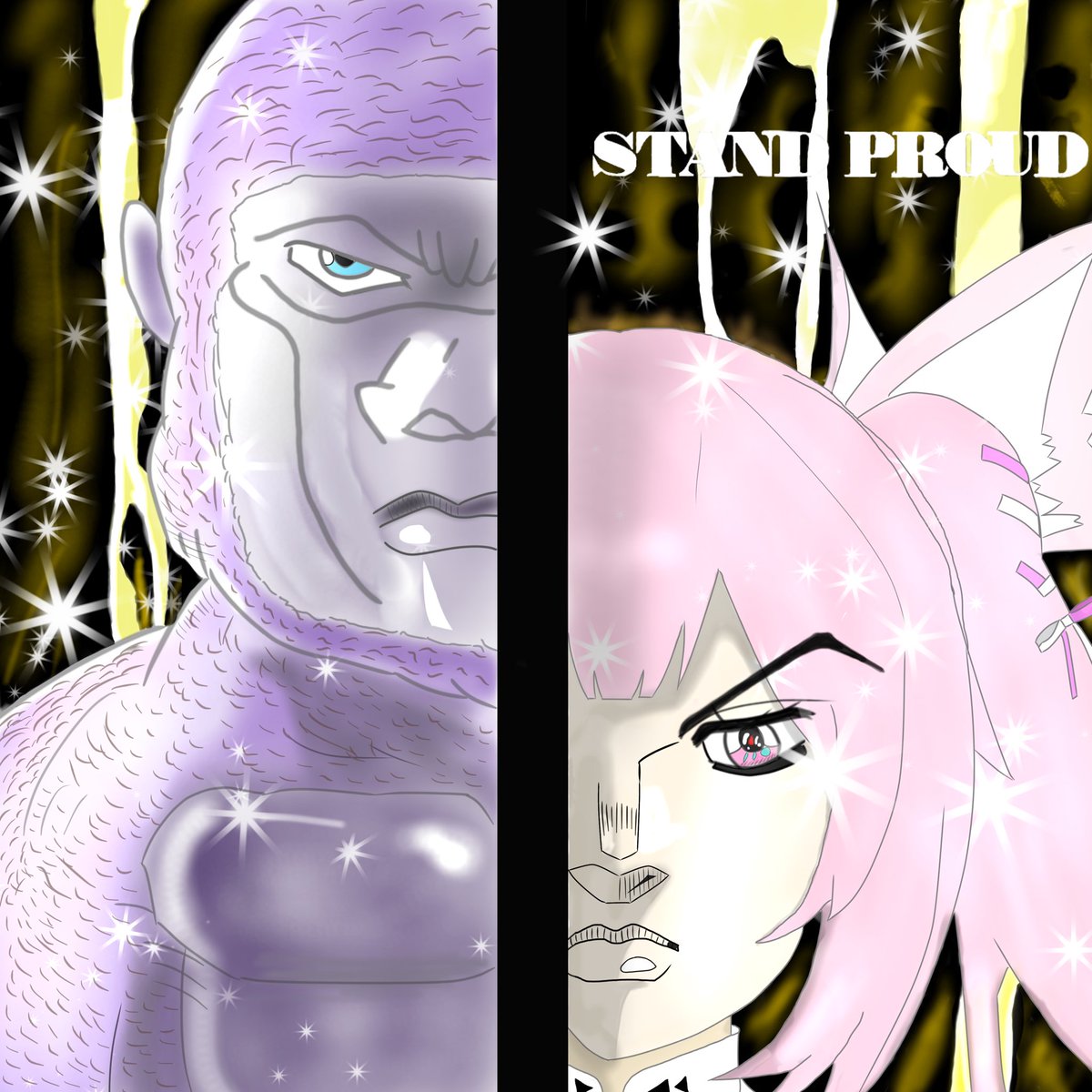 ちよちゃんにジョジョをもっともっと知ってほしいという願いでちよちゃんと幽波紋(?)っぽいの描いてみました!今にもちよちゃんが「うおおおおお!」って言いそうな感じにしてみたよ!ジョジョはいいぞ〜長いけどなぁ… #千代浦蝶美 #あおぎり高校美術部 #jjba