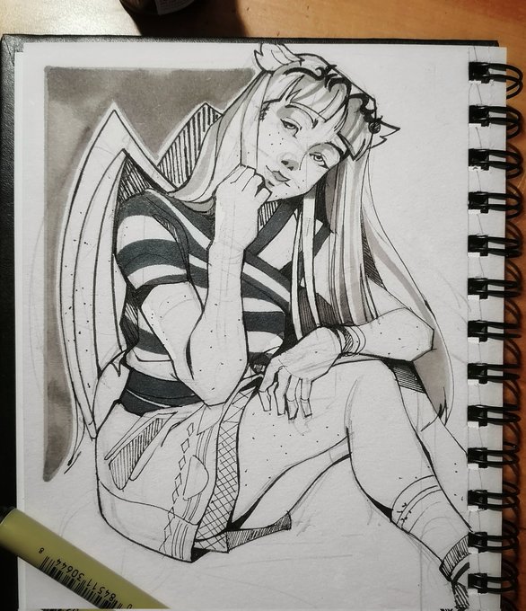 Suddenly I decided to start the challenge in the middle of the month. I think I'll do some couple of points The first task was a gargoyle. So I remembered Monster High character #inktober #monsterhigh