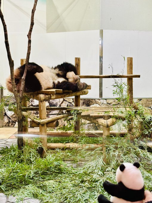 5 93 もぐもぐらうちゃんを見つめるはつタン🐼🥕 「らうさん、よく食べるなのー😳」 らうちゃんが竹に夢中だったから🍯🎋声掛けそびれちゃったね、はつタン😄 #良浜 #パンダ #アドベンチャーワールド #羊毛フェルト 22/12/26 18:50
