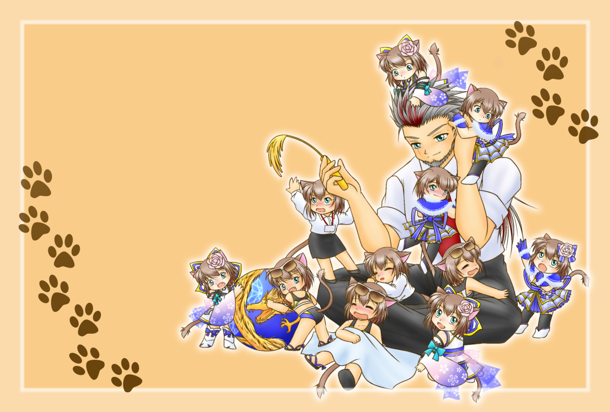 過去絵ですが、#猫の日 なので #イサミと仔猫シズク の絵 こうして見ると初めの頃のシズクはお題のせいもあってちっこくてわちゃわちゃしてた