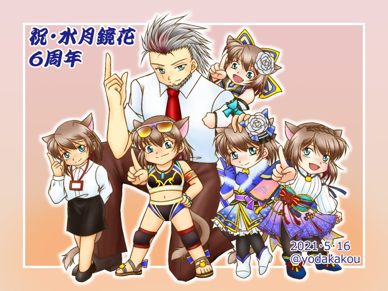 2 5 #今月描いた絵を晒そう 水月鏡花6周年記念に描いたこれ。かなり気合入れて描いたんだけど、あまり伸びなかった&モヤる結果に… #イサシズ #白猫 #イサミと仔猫シズク 21/05/31 19:15