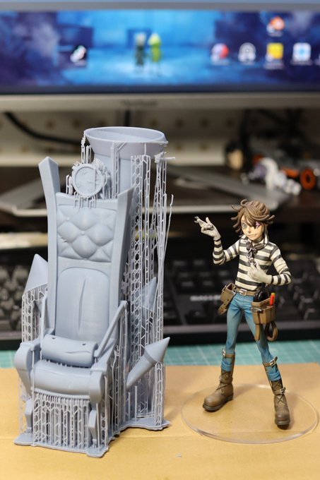 立体だとこの無常。新しい3Dプリンターのテストプリントのつもりで出力したのに、無常記念日が近いことに気づいて急ぎで塗ったやつ。粗は目立つけど第5の雰囲気にはあってると思う。3枚目はblenderで作ったCG #今年も残りわずかなので今年一番伸びた模型を貼る