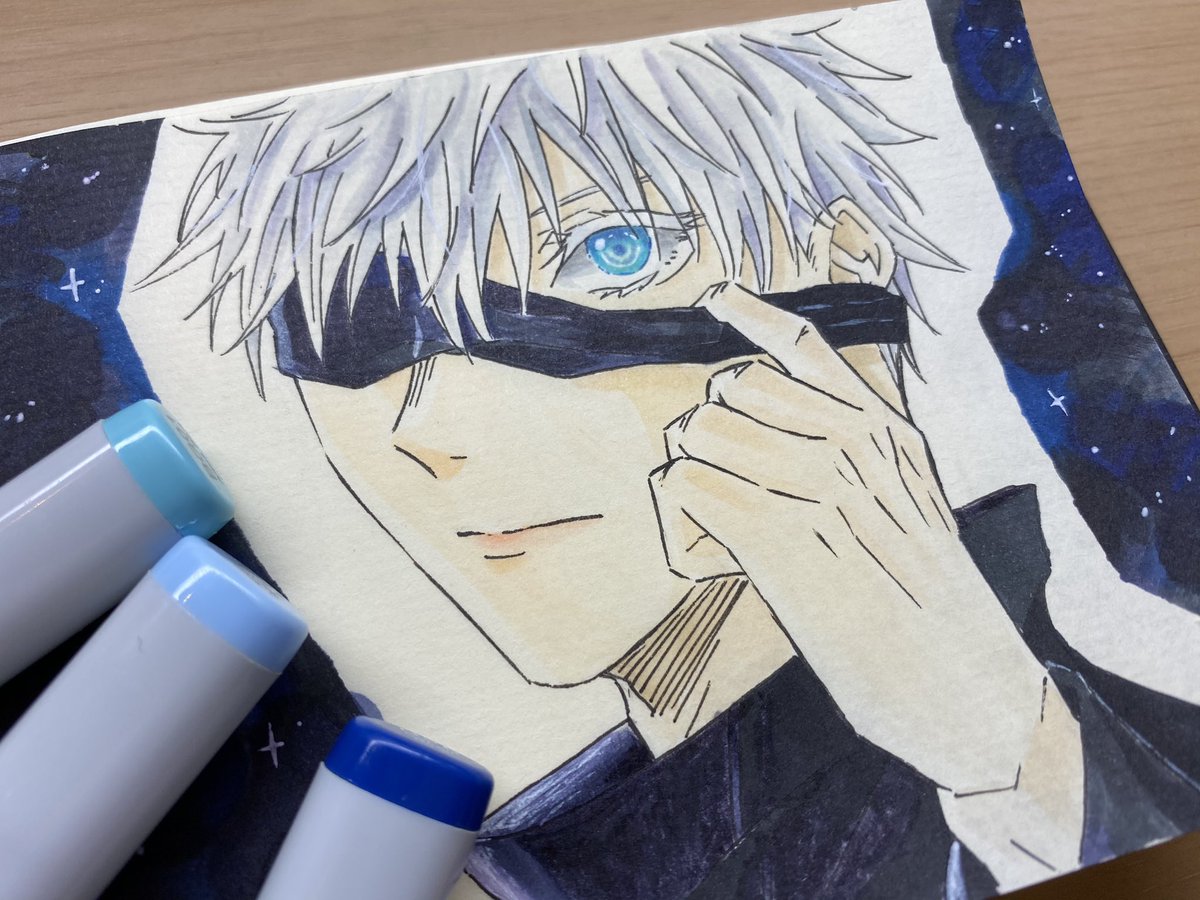 おそらく描き納めです。 そして誰か…ペンを持てば、推しではないがそこそこ好きな五条悟を描いてしまう病をどうにかしてくれ( -᷄ ω -᷅ ) #呪術廻戦 #五条悟 #コピック #絵師さんと繋がりたい #アニメ好きな人と繋がりたい ❤♻️💬で巡回します!フォロバもします!