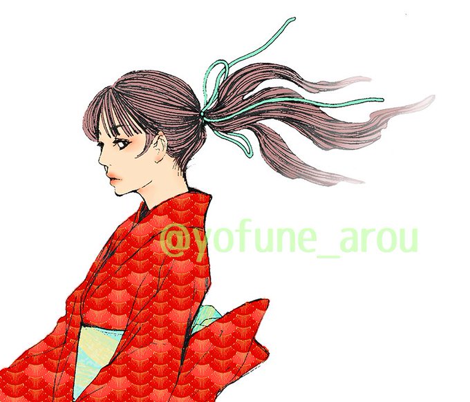 ゴフクヤサンの浴衣コンテスト、いいねやRTありがとうございました。 着物にマッピングしたものが見れて楽しかったです。 絵も描いてみました。 twitter.com/yofune_arou/st…