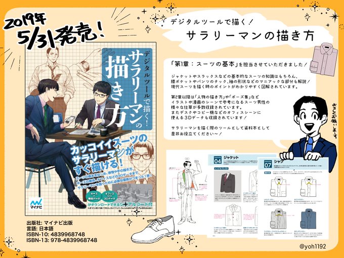 【お知らせ】『デジタルツールで描く!サラリーマンの描き方』いよいよ5/31発売です!ご縁がありまして「第1章:スーツの基本」を担当させて頂きました。基本的なスーツの知識からかなりマニアックな部分まで図解してます!どうぞよろしくお願いいたします! #リーマンの描き方