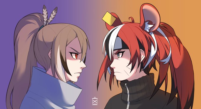 🎲&🪶: I'll become the greatest GOI Player!! -- yatta! finally finished drawing Baeruto and Moomsuke! #drawMEI #BaelzBrush