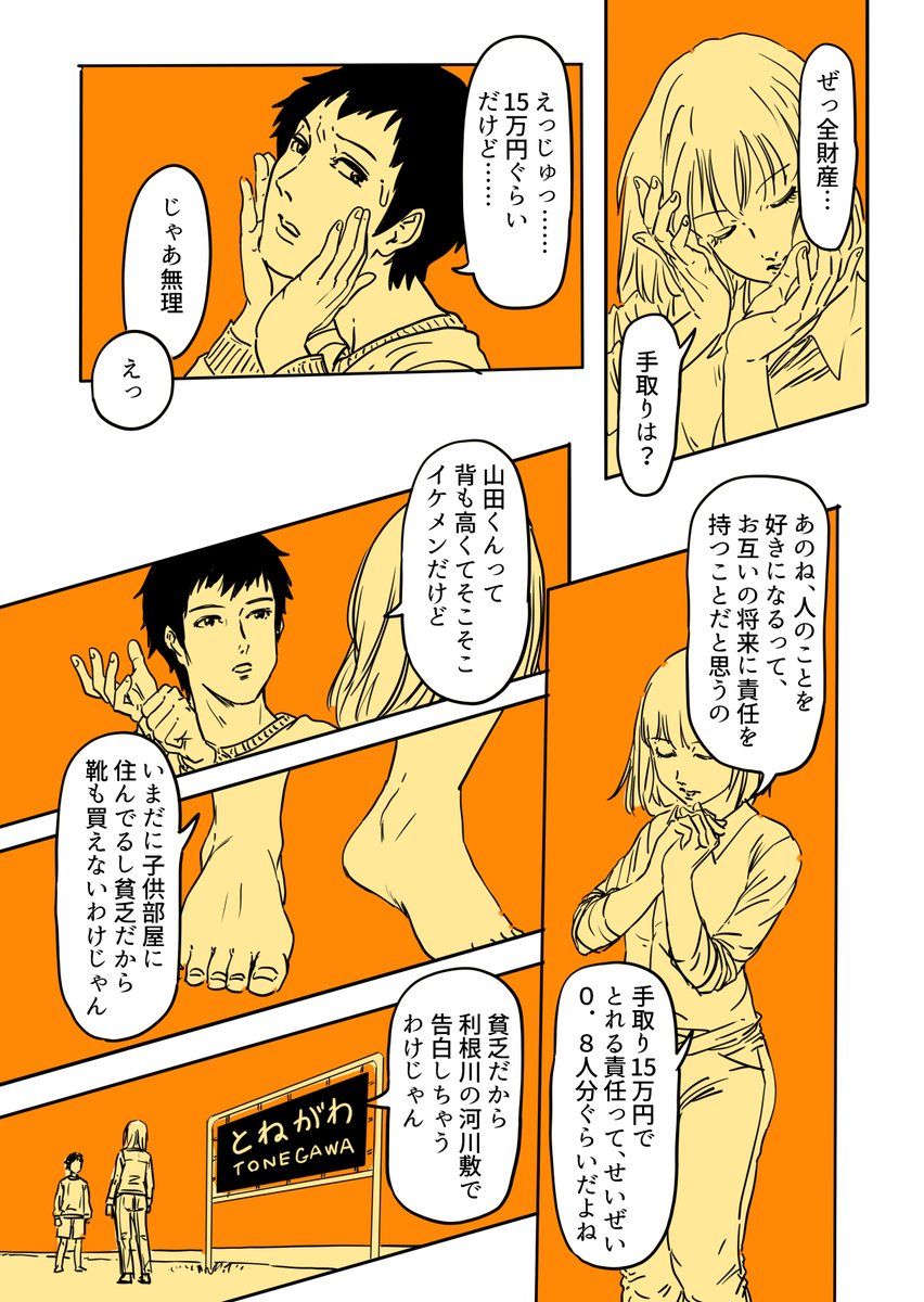 イラスト練習6日目。てきとうな漫画が輪をかけててきとうになってしまったが、駄作でもとりあえず毎日描くことが重要と考える。友人が手取り15万円の仕事を来年辞めるという話から着想。 #漫画 #漫画が読めるハッシュタグ #世にもくだらない話 #イラスト初心者 #6日目