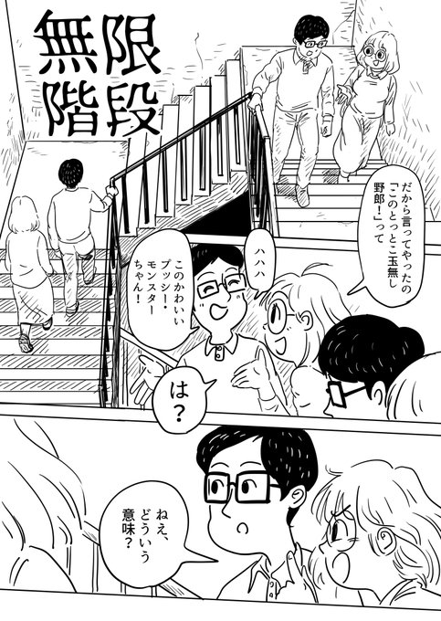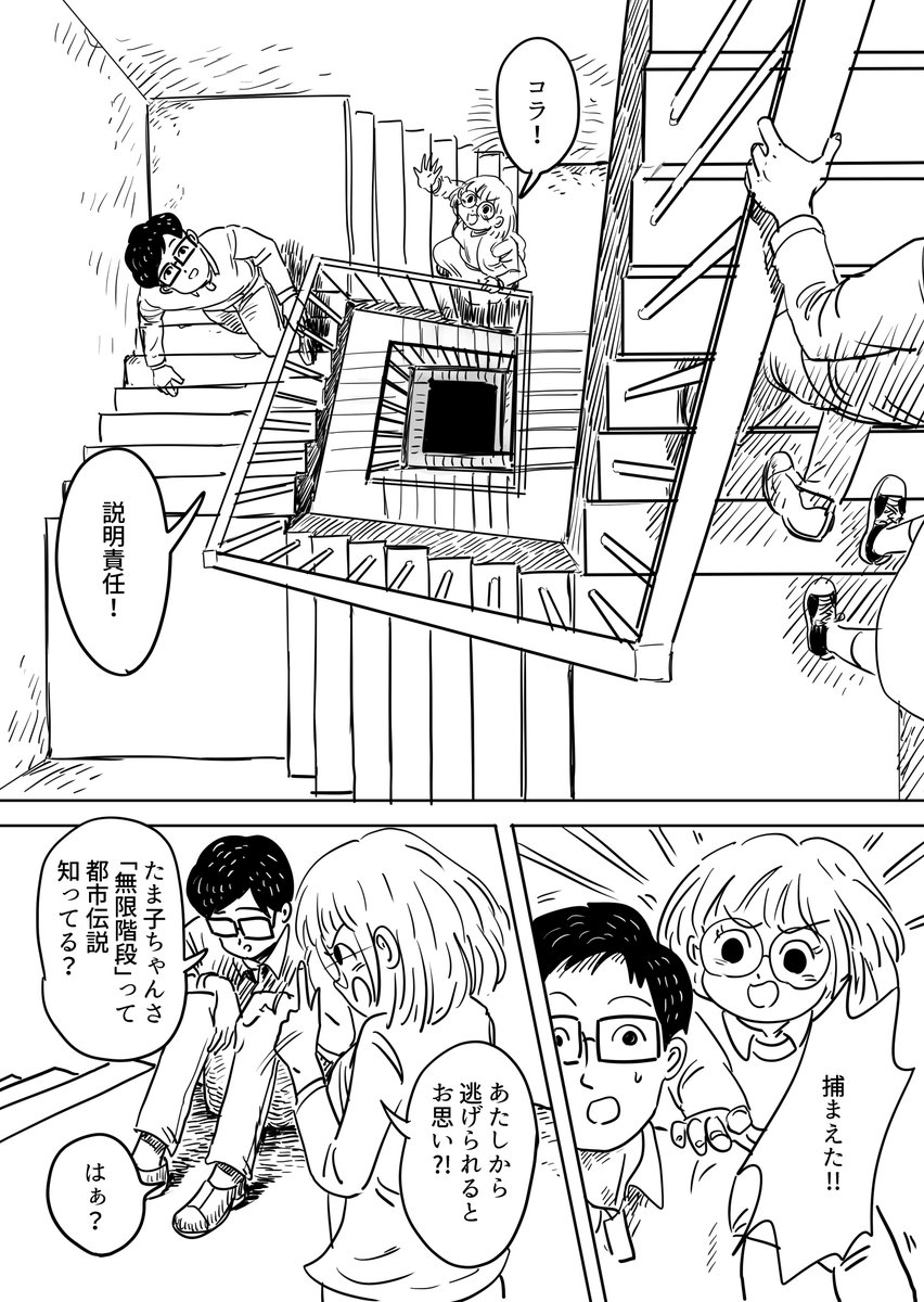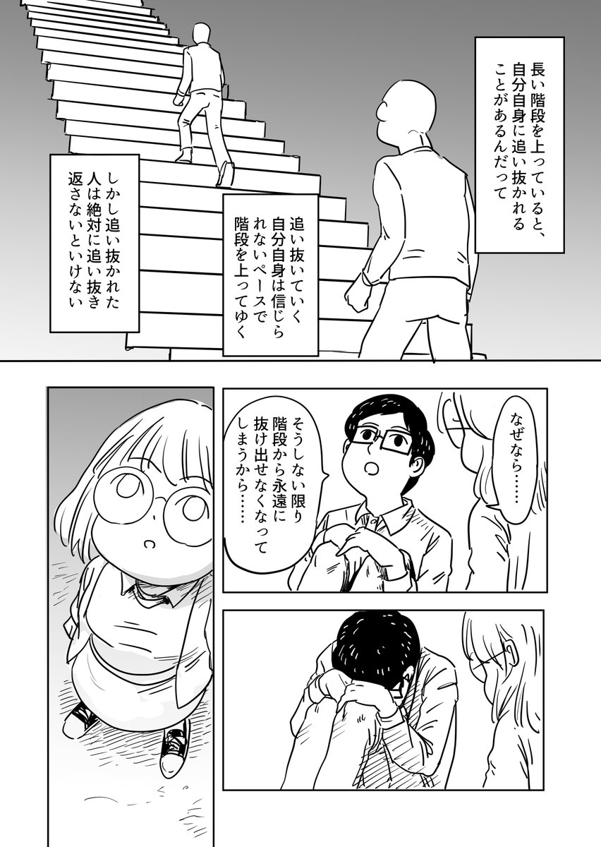 【漫画】「無限階段」 イラスト練習9日目。流行りの映画のサブタイトルから着想。階段を描く練習。難しい。。 #漫画 #漫画が読めるハッシュタグ #世にもくだらない話 #イラスト初心者 #9日目
