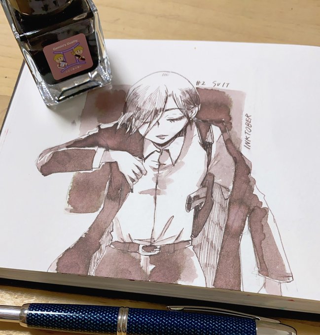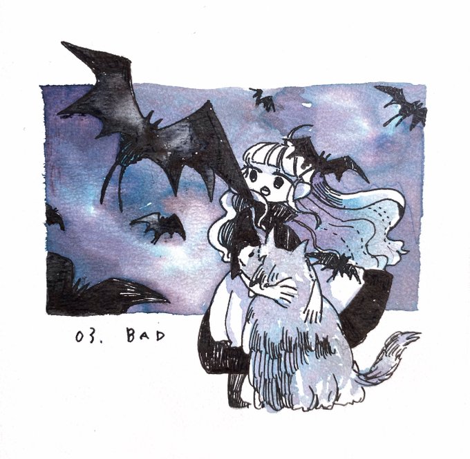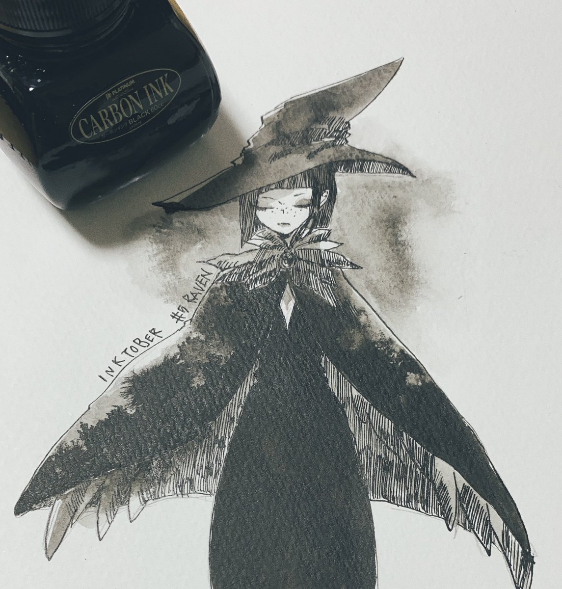 #inktober2021 #inktober #インクトーバー 1日遅れだけどカラスイメージの魔女さん インクはプラチナさんのカーボンインク。顔料インクなので耐水性。カラスのお題は真っ黒インクで!と決めていた。