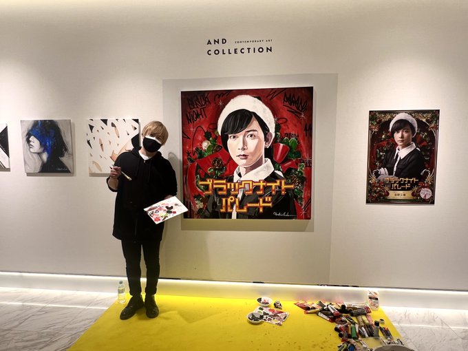 表参道ヒルズB2F ANDCOLLECTIONさんにて開催中の個展 2GENも後半に入ってレイアウトも変わり、映画『#ブラックナイトパレード』のコラボ・ライブペイント作品と一緒に、吉沢亮さんが撮影で着用した本物の衣装も展示されコラボ感が増しております。 @bnp_movie @andcollection_official
