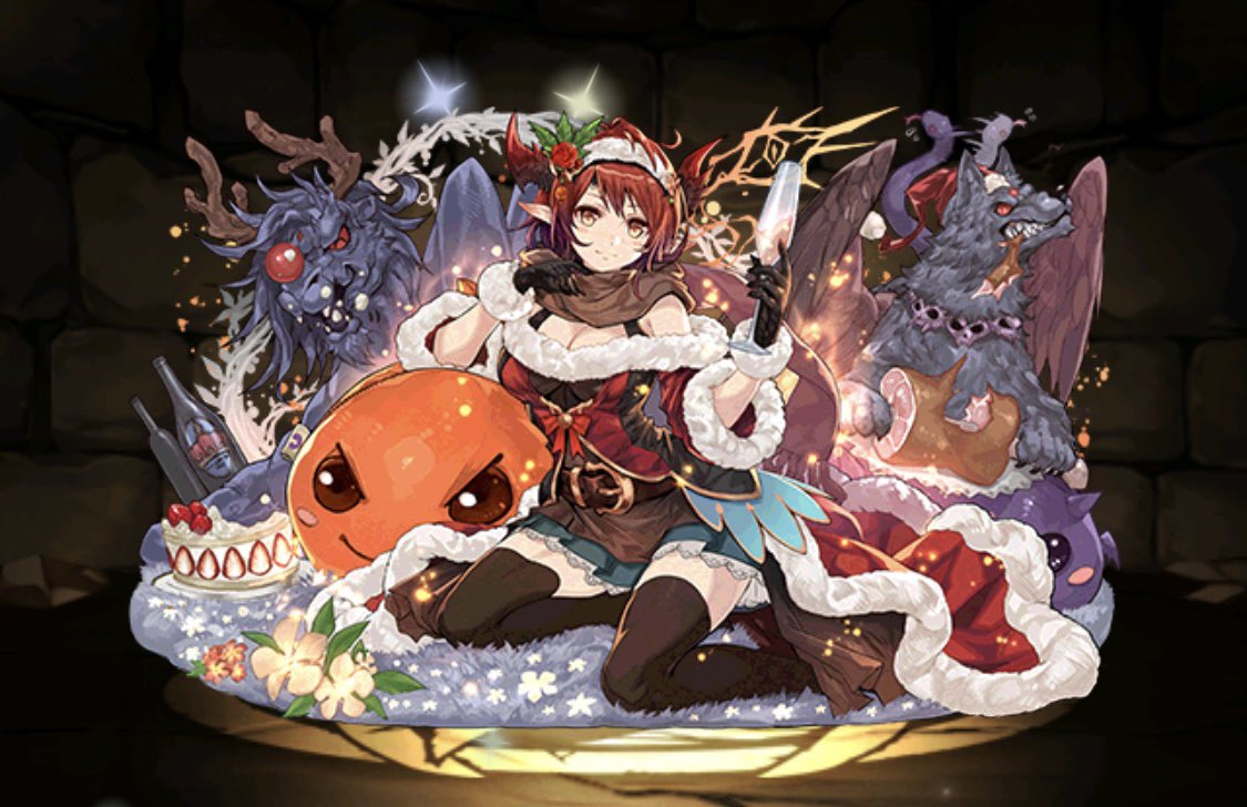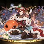 パズドラで描かせて頂いたクリスマスロミア🐱イルミナちゃんが尻尾でこちょばしてます!こちょばい!