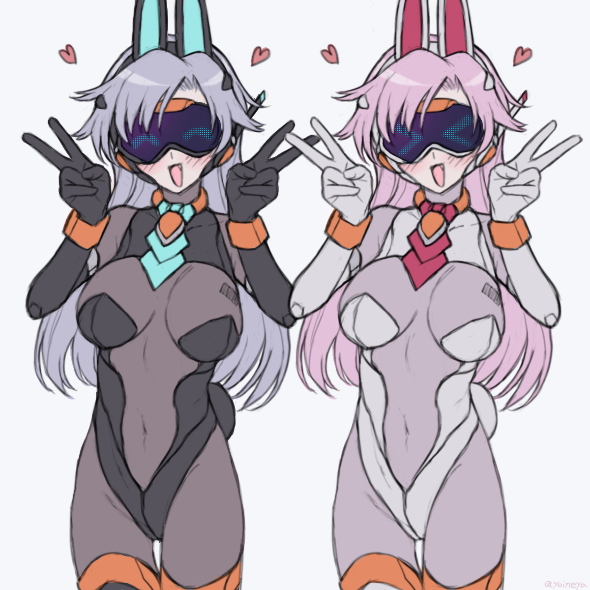 自作品宣伝用マスコットキャラにする予定で作った量産型バニーアンドロイドちゃんズです!! #オリジナル #OC