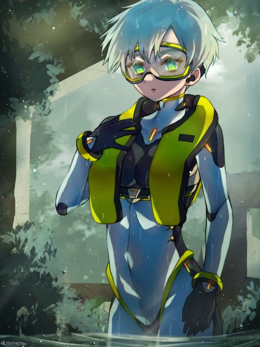 救命胴衣と一体化したデザインのスーツを着たゴーグル装備の女の子というリクエストで描かせていただきました!! #Skeb