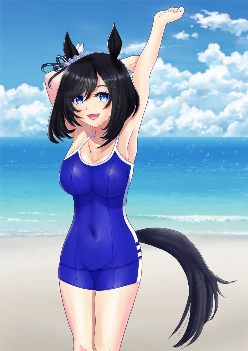 推しのエイシンフラッシュを描いてみました🐥 1月以降のサークルメンバー募集のイラストに使う予定です❗️ 夏合宿での新スク水は素晴らしいイベント🤗 #イラスト練習中 #ウマ娘絵描きさんと繋がりたい