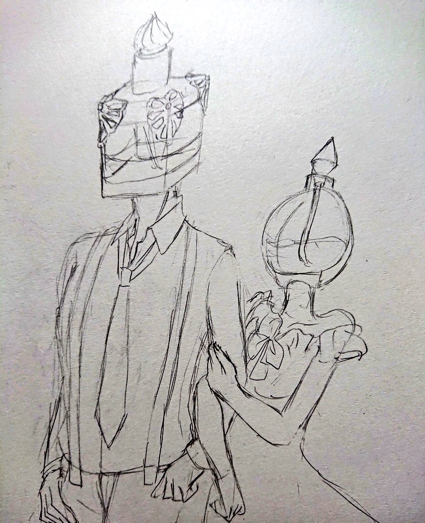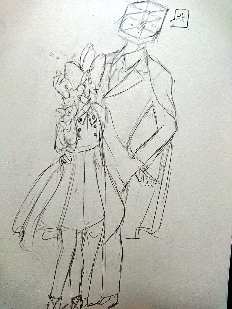 『bossの愛人と噂された猫腕時計さんの話』(4/8) 黒猫娘さん(@Illustratorncat)との合作です!! #黒猫娘ファンアート #無秩序な異形頭 #虚無な異形頭