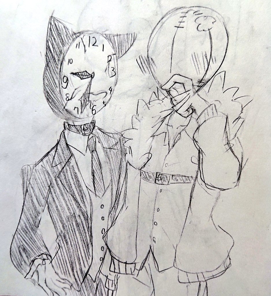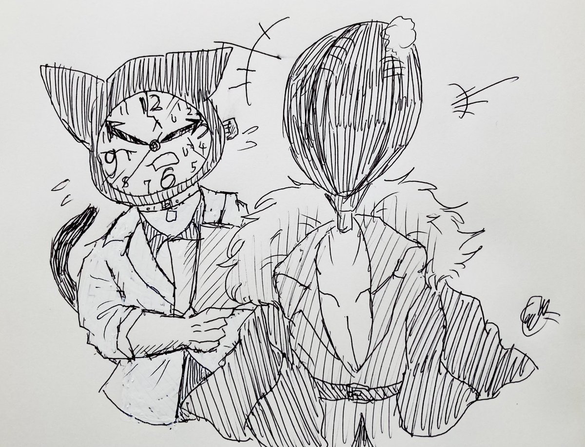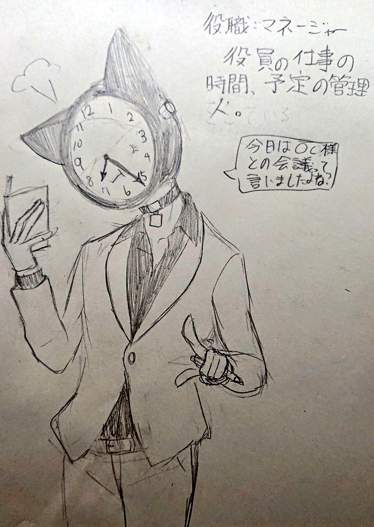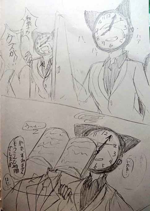 うちの世界線のドM猫腕時計くん。 役員は皆自由人ばかりなので、予定を伝えては理不尽にやつ当られることも多々。 #無秩序な異形頭 #黒猫娘ファンアート