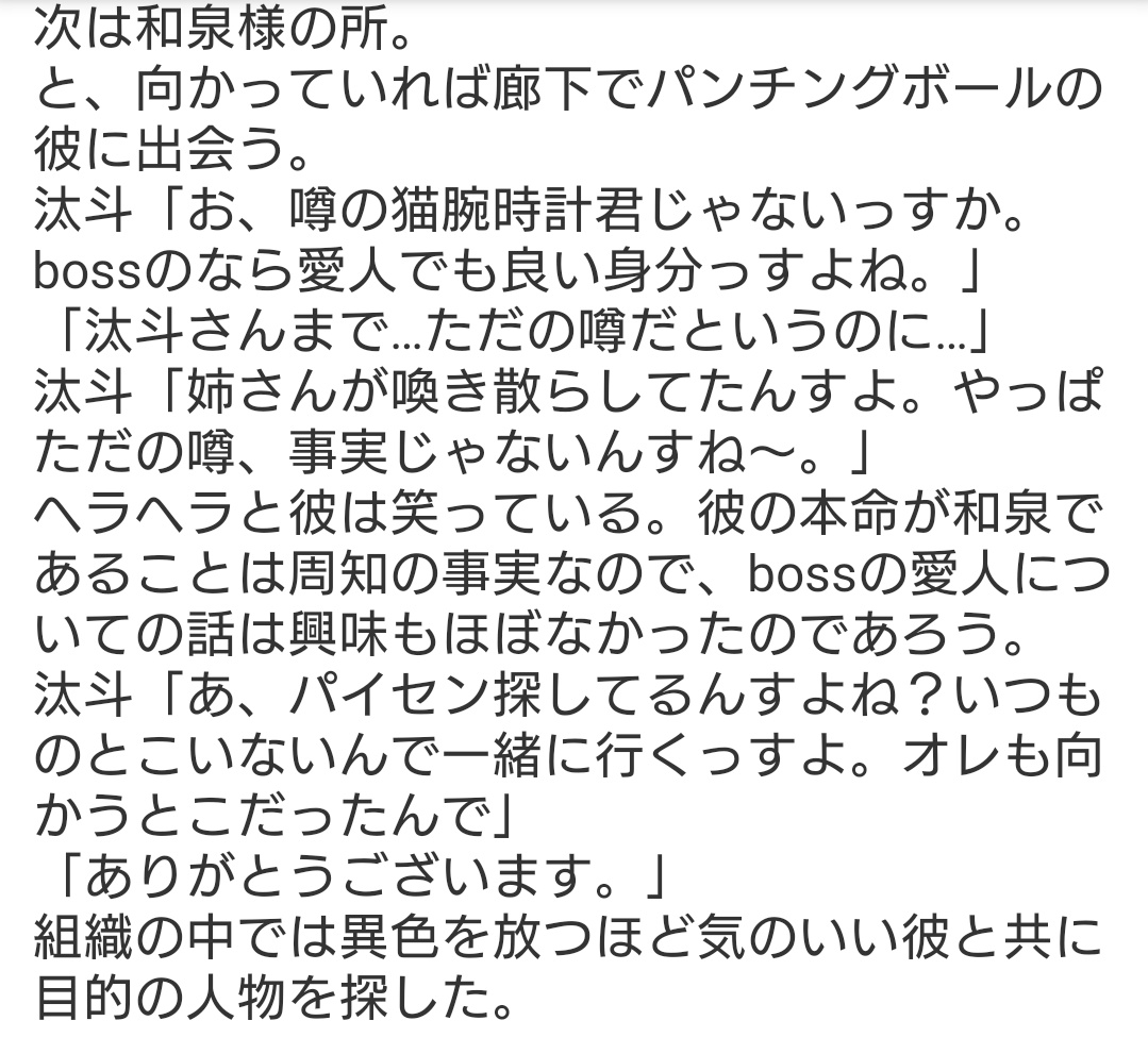 2 5 『bossの愛人と噂された猫腕時計さんの話』(4/8) 黒猫娘さん(@Illustratorncat)との合作です!! #黒猫娘ファンアート #無秩序な異形頭 #虚無な異形頭 22/05/27 23:49