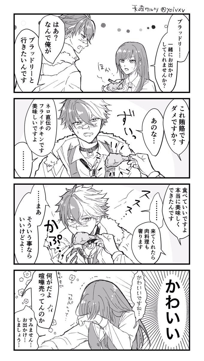 48 473 フォ学?フォル学?のネロの家で真剣に漫画読むネロとブラッドリーと晶♀の落書き 晶♀の制服は私がセーラーが好きなのでセーラーにしてみました 22/12/31 00:42
