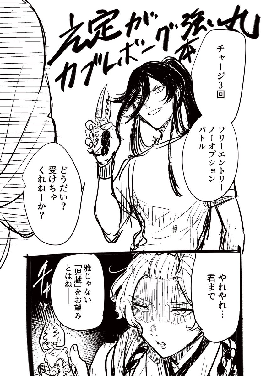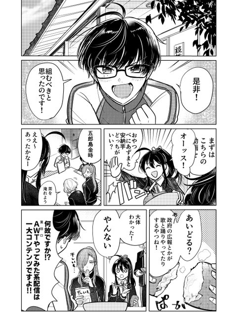 218 590 【漫画】篭手切江VS問題児の多い脇差 ファイ!!! 審神者は「刀の配信動画は本丸事情により、よくわかない組み合わせになりがち」などと供述しており・・・・ お題箱から「篭手くんが脇差もアイドル化計画を実行しているところを見たいです」 21/03/08 18:03