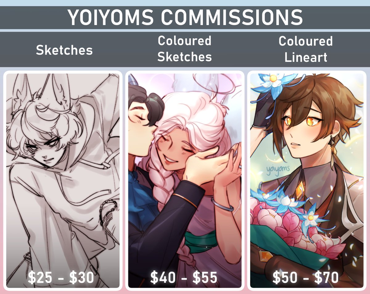 RTs appreciated 💞 I'm opening comms~ 3 slots available! - All prices are in AUD - Paypal only - OCs and FFXIV charas more than welcome! For more info and samples, as well as a link to my ToS, please visit my carrd (link below) ✨DM if interested ✨