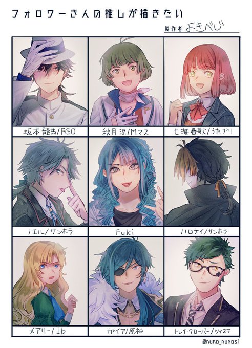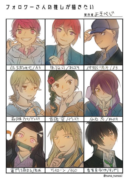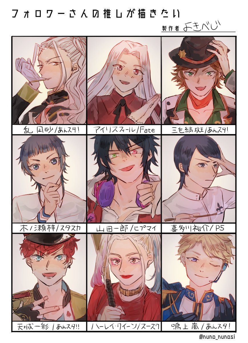 #フォロワーさんの推しが描きたい 長らくお待たせしました!普段描かないキャラクターも沢山描けてとても楽しかったです😊 お付き合いくださりありがとうございました~