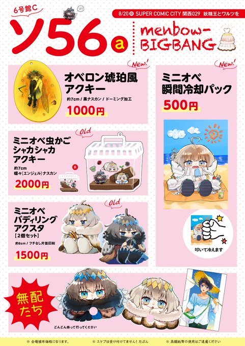 🦋6/25(日)ぐだオベオンリーお品書き わたしはグッズですが、委託でnikawaさんのぐだオベ小説あります! 無配、割と刷ってしまったので、人助けと思って無配だけでも取りに遊びに来てくれると嬉しいです! よろしくお願いします! 【東3ホール ギ08b | menbow-BIGBANG】 #飛んで青空入る夏の虫JB2023