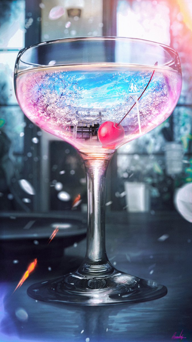 613 4631 「黄昏桜」 桜をテーマにしたカクテルのイラストです 23/03/24 19:00