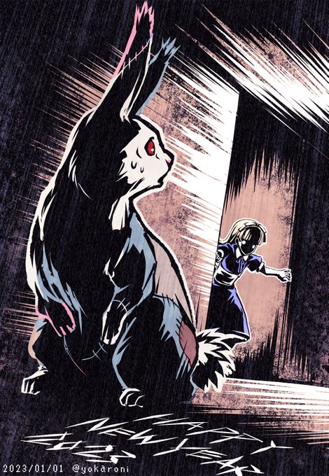468 1084 卯年やんけ!!!アリスちゃんとイナバシロちゃんの可愛らしいイラスト描こ☆とか思って描き始めたはずなのにどうしてこうなったのか分かりませんがあけましておめでとうございます #メガテン 23/01/01 12:20