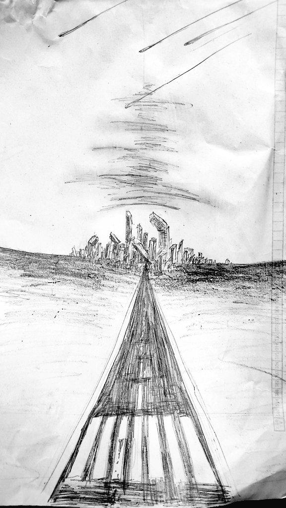 0 11 #rkgk #イラスト #アナログイラスト #落書き #イラスト好きさんと繋がりたい 廃墟都市です (落書き) 22/07/20 15:59