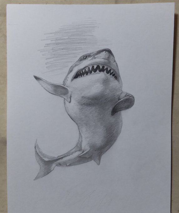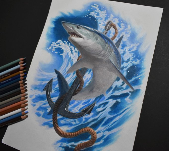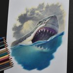 75 562 #色鉛筆イラスト 色鉛筆でホホジロザメ描きました🦈 21/10/18 06:28