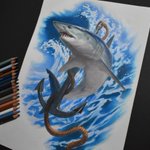 151 834 色鉛筆でアオザメ描きました〜!🦈 #色鉛筆 #イラスト 21/09/20 11:22