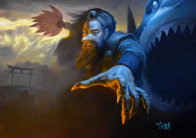 メガロドンの油絵ッス #絵柄が好みっていう人にフォローされたい