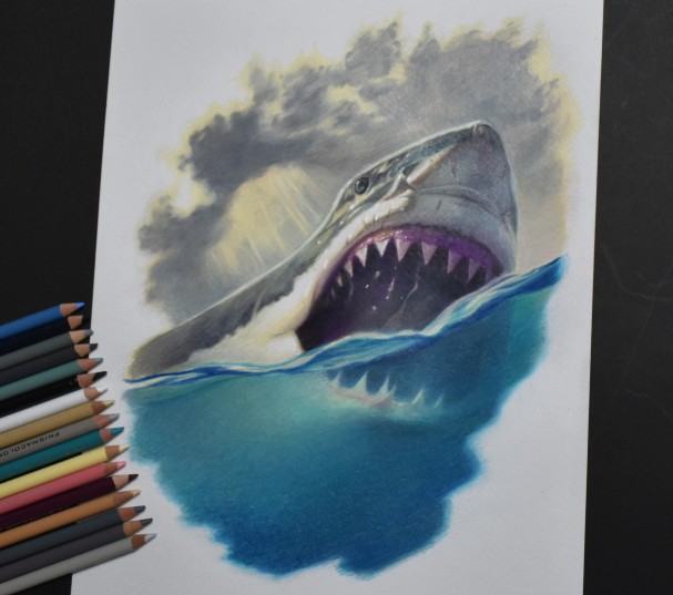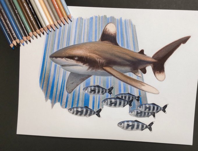 #色鉛筆イラスト 色鉛筆でホホジロザメ描きました🦈
