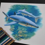 #色鉛筆イラスト 浅瀬を泳ぐヨシキリザメを色鉛筆で描きました🦈